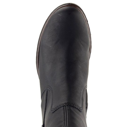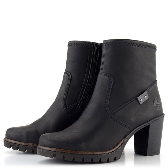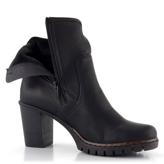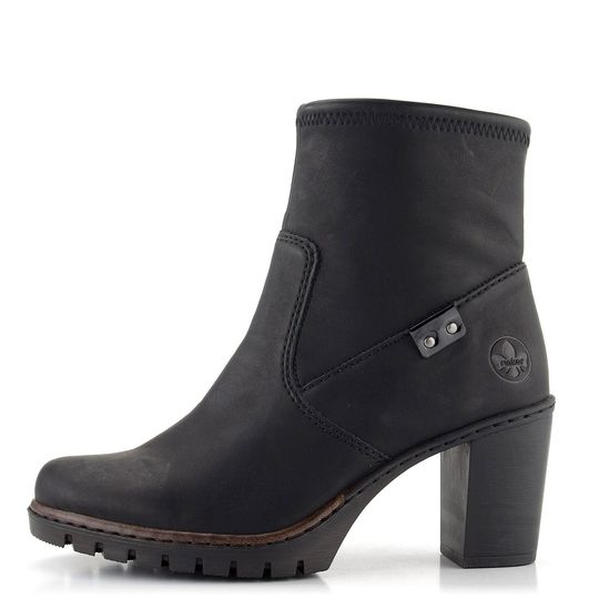 Pro chladné podzimní a zimní dny nabízíme dámskou kotníčkovou obuv od značky Rieker, která kombinuje eleganci a pohodlí. Tento model je vyroben z hladké syntetiky, která v kotníkové části mírně pruží, což zajišťuje maximální komfort při nošení. Díky zipu na vnitřní straně je obutí velmi snadné a rychlé. Uvnitř boty naleznete teplejší fleecovou podšívku, která udrží vaše nohy v teple i během chladných dnů. Stélka s filcovým potahem a vyšší syntetická podešev s protiskluzovým vzorkem a stabilním podpatkem (7,5 cm) zajišťují bezpečný a pohodlný krok. Tento model je šitý způsobem, který je velmi pohodlný a flexibilní, avšak nezaručuje vodotěsnost. Pro zvýšení odolnosti vůči vlhku doporučujeme použít vhodné impregnační přípravky. Ideální volba pro elegantní a komfortní zimní obuv.