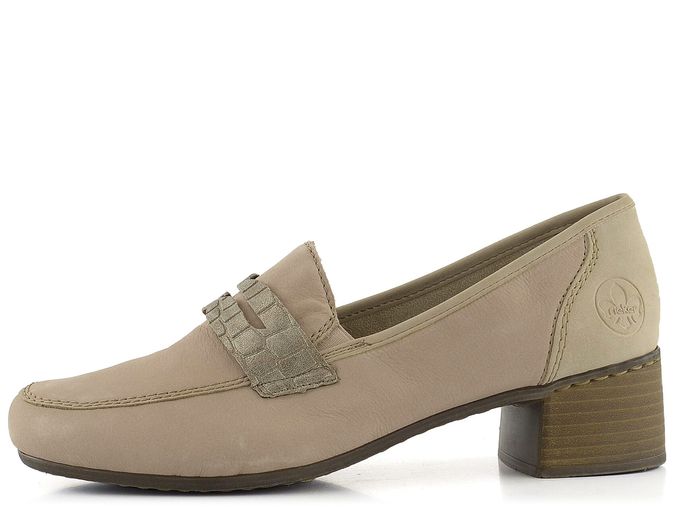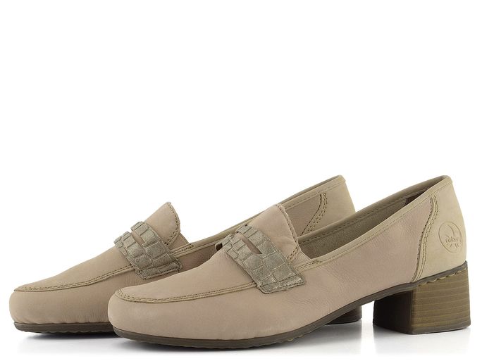 Elegantní kožené polobotky na podpatku od značky Rieker jsou ideální volbou pro ženy, které hledají spojení stylu a pohodlí. Tyto boty z kolekce jaro/léto 2023 se pyšní nubukovou kůží kombinovanou s matnou a metalickou syntetikou, což jim dodává jedinečný vzhled. Béžový odstín je univerzálně laditelný, zatímco metalický pásek s hadinkovou strukturou dodává botám moderní šmrnc. Díky pruženkám na obou stranách nártu je obutí snadné a chůze pohodlná. Uvnitř najdete měkkou koženou stélku a textilní podšívku, které zaručují komfort i při celodenním nošení. Ohebná syntetická podešev s nízkým podpatkem o výšce 4,5 cm poskytuje stabilitu a pohodlí. Šitý výrobní způsob zaručuje dlouhou životnost. Ideální pro každodenní nošení do města, kanceláře nebo na lehkou procházku.