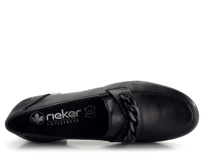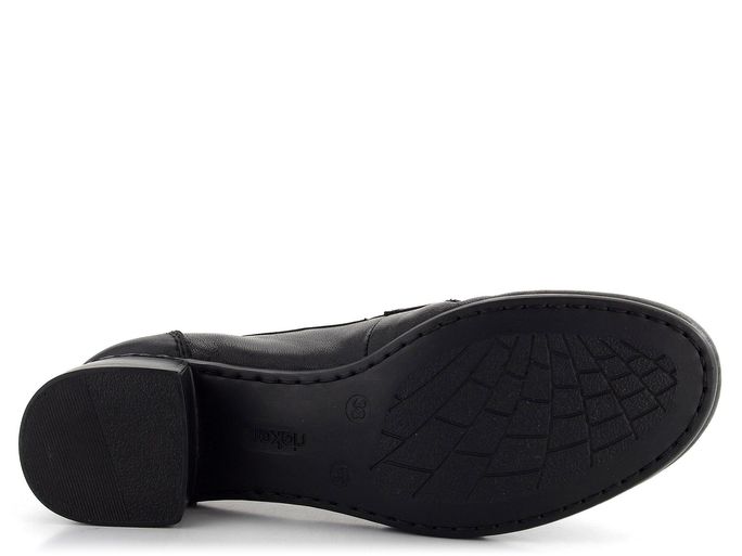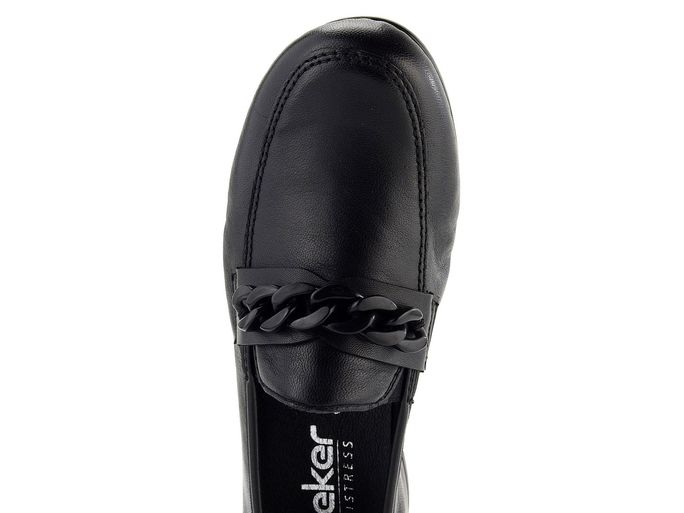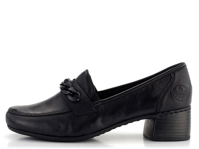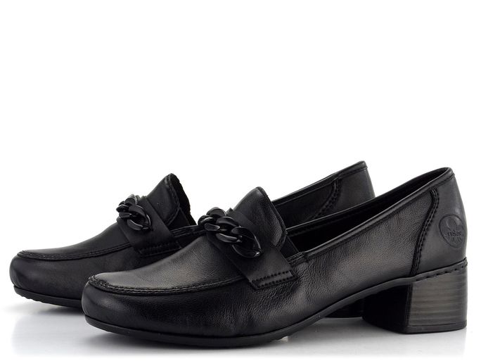 Elegantní polobotky na podpatku od značky Rieker jsou ideální volbou pro ženy, které hledají stylovou a pohodlnou obuv pro jarní a letní sezónu. Tyto boty v černé barvě se vyznačují hladkým svrškem z kombinace kůže a syntetiky, což zajišťuje dlouhou životnost a elegantní vzhled. Kulatá špička a nárt zdobený řetízkem v matném černém provedení dodávají botám jedinečný šarm. Díky pruženkám všitým na obou stranách nártu je obutí snadné a chůze pohodlná. Uvnitř najdete textilní podšívku a extra měkkou, koženou stélku, která poskytuje maximální komfort. Ohebná syntetická podešev se širokým stabilním podpatkem vysokým 4,5 cm zajišťuje bezpečnou a stabilní chůzi. Tyto polobotky jsou vyráběny šitým způsobem, což přispívá k jejich pohodlí a flexibilitě. Pro zvýšení odolnosti vůči vlhku doporučujeme používat vhodné impregnační přípravky.