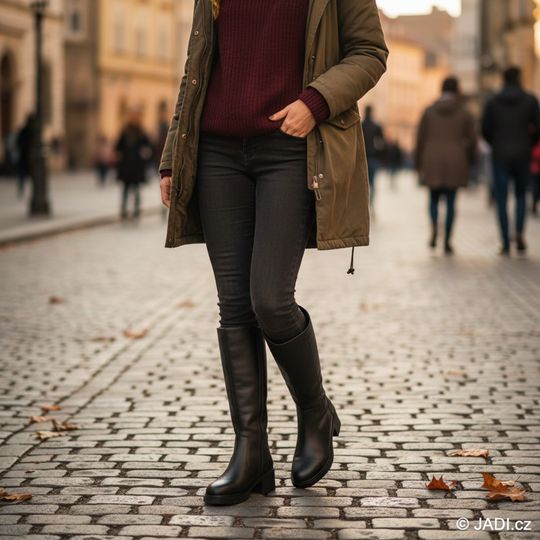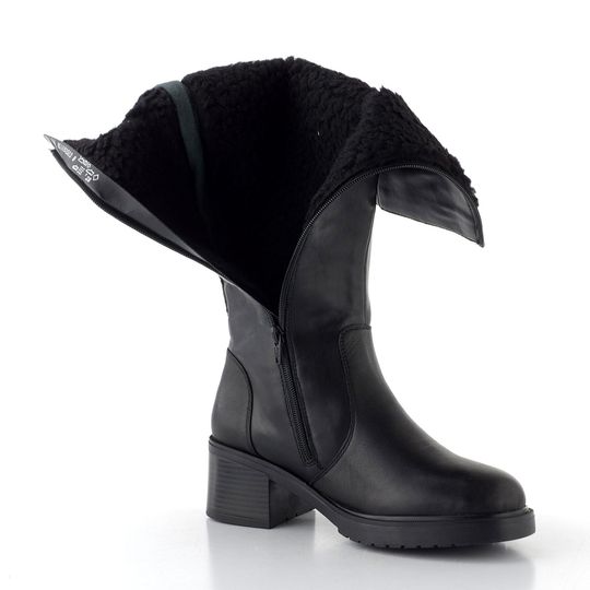 Dámské vyteplené kozačky na podpatku s možností rozšíření obvodu lýtka.
