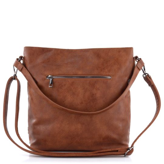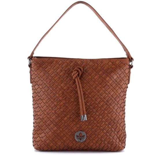 Dámská kabelka v hnědé barvě, s proplétanou přední stranou a odepínatelným crossbody popruhem.