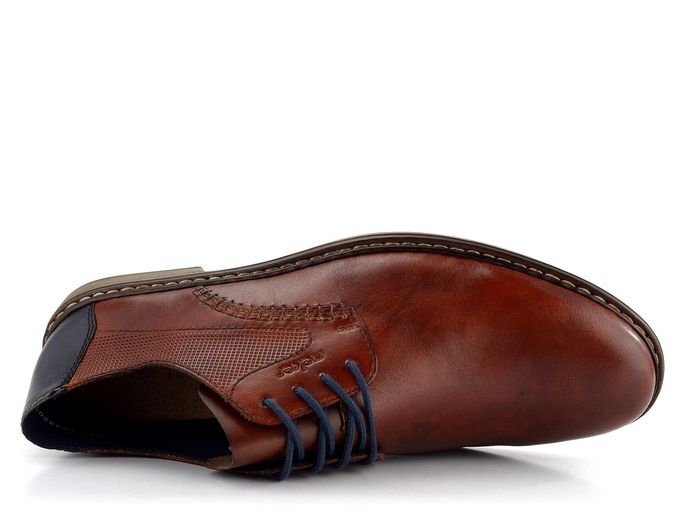 Lehké pánské šněrovací polobotky od značky Rieker jsou ideální volbou pro každodenní nošení. Svršek z hladké kůže v kombinaci se syntetikou na patě a jazyku zajišťuje dlouhou životnost a pohodlí. Tyto polobotky vynikají svým sytým odstínem červenohnědé barvy s jemným stínováním, doplněným o tmavě modré prvky, které dodávají botám elegantní vzhled.