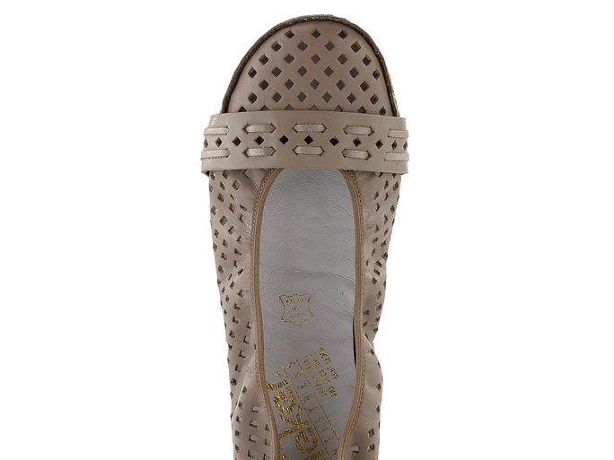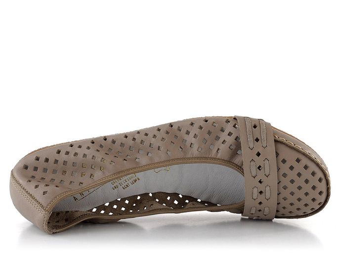 Jemné a decentní baleríny od značky Rieker jsou ideální volbou pro každou ženu, která hledá pohodlí a styl. Tyto baleríny v tmavě béžovém - šedohnědém odstínu jsou vyrobeny z kvalitní hladké kůže, která zaručuje dlouhou životnost a komfort při nošení. Ozdobný pásek na špičce, propletený metalickými proužky ve stříbrné barvě, dodává botám elegantní vzhled. Perforace na bocích i špičce zajišťuje příjemné odvětrávání chodidla. Kožená podšívka a měkká kožená stélka poskytují maximální pohodlí. Pružný okraj a ohebná, latexová podešev s mírným podpatečkem (1,2 cm) podporují optimální „fitting“ a příjemné nošení. Tyto baleríny jsou ideální volbou pro jarní a letní sezónu, ať už do města, kanceláře nebo na lehkou procházku.