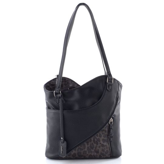 S touto kabelkou na rameno/batoh od módní značky Rieker získáte stylový a praktický doplněk, který se hodí pro každou příležitost. Její černá barva s elegantním zvířecím vzorem v odstínech černé, hnědé a tmavě šedé dodává nádech originality. Kabelku můžete nosit klasicky přes rameno nebo jako batoh, což oceníte při každodenním nošení.