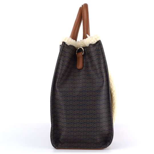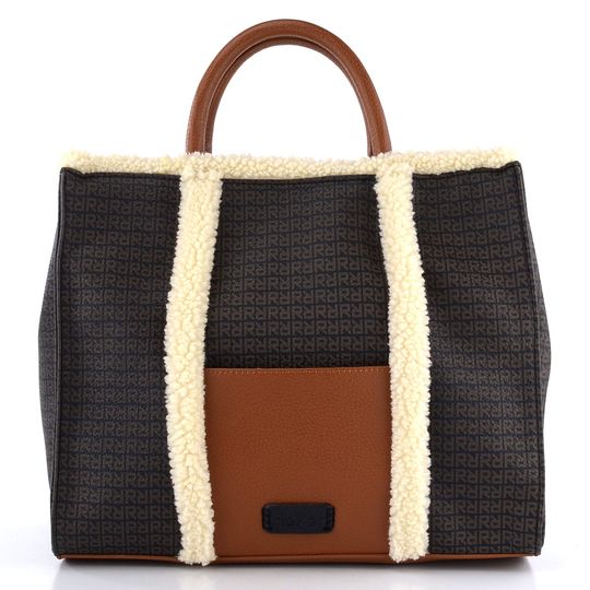 Stylová dámská kabelka od značky Rieker je ideální volbou pro podzimní a zimní sezónu. Tato kabelka střední velikosti, která nepojme formát A4, je vyrobena z pevné jemně strukturované syntetiky s elegantním černým potiskem a doplňky v koňakově hnědé barvě. Lemy z umělého beránku a kovové prvky ve stříbrné barvě dodávají kabelce jedinečný vzhled.