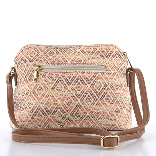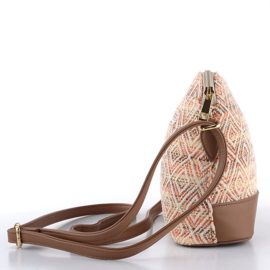 Pokud hledáte stylovou a praktickou kabelku pro každodenní použití, tato dámská crossbody kabelka od značky Rieker je ideální volbou. Kombinuje vytkávanou textilii s hladkou syntetikou, což vytváří jedinečný vzhled. Základní hnědá barva v odstínu koňak je doplněna barevným vzorem v odstínech hnědé, červené, béžové a krémové. Kabelka má zlaté kování a praktické zipové kapsičky na drobnosti. Díky nastavitelnému ramennímu pásku ji lze nosit klasicky nebo jako crossbody. S rozměry 26 cm na šířku, 18 cm na výšku a hloubkou dna 8 cm poskytuje dostatek prostoru pro vaše nezbytnosti.