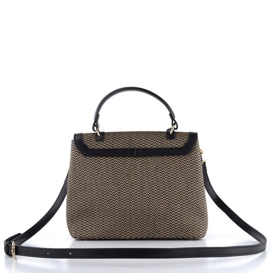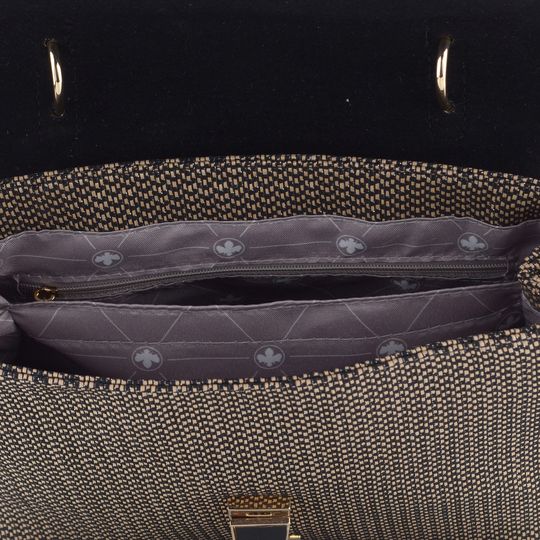 Dámská kabelka od značky Rieker v elegantní černo-béžové kombinaci je ideální volbou pro ty, kdo ocení autentický design a trvalou kvalitu. Je vyrobena z umělého lýka, prošívaného černou lurexovou nití, a doplněna hladkou syntetikou a zlatým kováním. Kabelka nabízí praktické uspořádání - vnitřní přepážka rozděluje hlavní kapsu na dvě části, z nichž jedna obsahuje zipovou kapsičku na cennosti, zatímco druhá nabízí dvě otevřené kapsičky na drobnosti. Odepínatelný ramenní popruh s nastavitelnou délkou zajišťuje pohodlné nošení. S rozměry 23 cm na šířku, 20 cm na výšku a hloubkou dna 8,5 cm je tato kabelka ideálním doplňkem pro každodenní nošení i formální příležitosti.