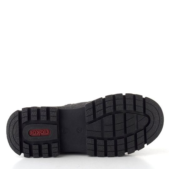 Kotníkové boty značky Rieker Y0212-00 představují stylový a pohodlný kousek pro podzimní a zimní sezónu. S robustní latexovou podešví a výškou podpatku 5 cm se skvěle hodí do městského prostředí i na lehké procházky. Svršek z kvalitní strukturované syntetiky s lehce mačkaným efektem dodává botám moderní vzhled, zatímco vyteplený vnitřek s hustou podšívkou zajišťuje teplo a komfort.