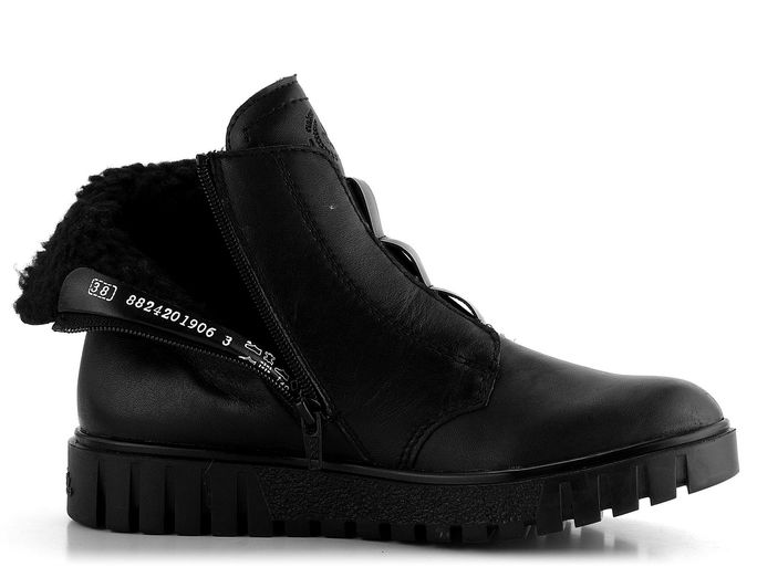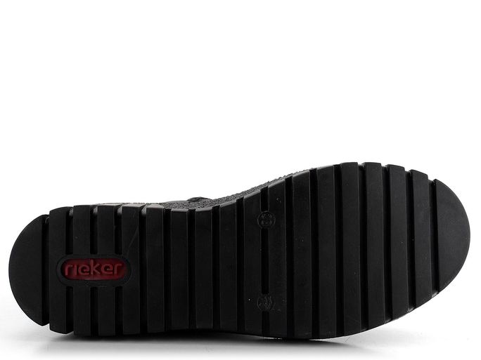 Vstupte do podzimu a zimy s elegancí a komfortem díky dámským kotníkovým botám značky Rieker. Tento model vyniká prostorným kulatým střihem a hladkou koženou konstrukcí v klasické černé barvě. Namísto šněrovadel jsou na nártu tři řady pruženek, které jsou provlečené skrz středový prošitý pásek, což dodává botám stylový vzhled a zároveň usnadňuje nazouvání pomocí postranního zipu. Uvnitř najdete teplou beránkovou podšívku a filcem potaženou stélku, která zaručí, že vaše nohy zůstanou v teple i během chladnějších dnů. Vyšší platforma s hrubým dezénováním a vysokým podílem latexu poskytuje stabilitu a pohodlí při každém kroku. Výška podpatku je 3,5 cm a kotník měří 13 cm v zadní vyvýšené části. Tento model je ideální volbou pro ženy, které hledají stylovou a zároveň praktickou obuv pro městské prostředí i lehké procházky venku.