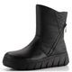 Kulatý prostorný střih zajišťuje pohodlí při nošení, zatímco svršek z kombinace kůže a syntetiky poskytuje odolnost a elegantní vzhled. Černá barva dodává botám univerzálnost, takže je snadno zkombinujete s jakýmkoliv outfitem.
