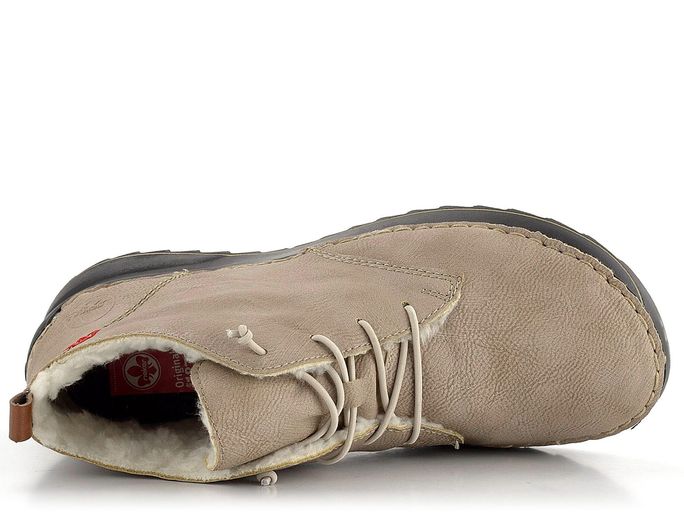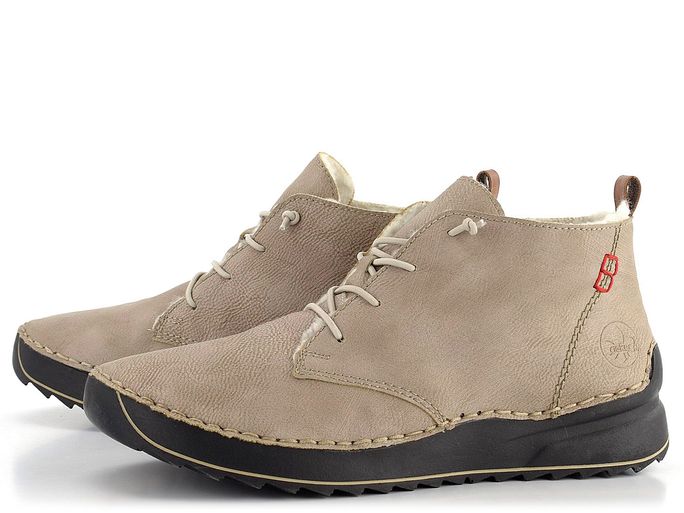 Dámský vyteplený kotník od značky Rieker v elegantní béžové barvě je ideální volbou pro podzimní a zimní dny. Tento model nabízí prostornou kulatou špičku, což oceníte zejména pokud máte širší chodidlo. Svrchní materiál je vyroben ze strukturálního syntetického materiálu, který dodává botám stylový vzhled.
