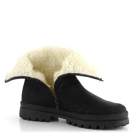 Pro ženy, které hledají spolehlivou obuv na chladné dny, jsou tu kotníkové boty od značky Rieker. Tyto funkční sněhule v černé barvě kombinují syntetiku a prošívanou šusťákovinu, což zajišťuje nejen atraktivní vzhled, ale také odolnost. Díky postrannímu zipu je obutí snadné a rychlé. Uvnitř najdete teplou střižní podšívku z umělého beránka, která spolu s měkkou vyjímatelnou stélkou potaženou beránkem poskytuje maximální pohodlí.