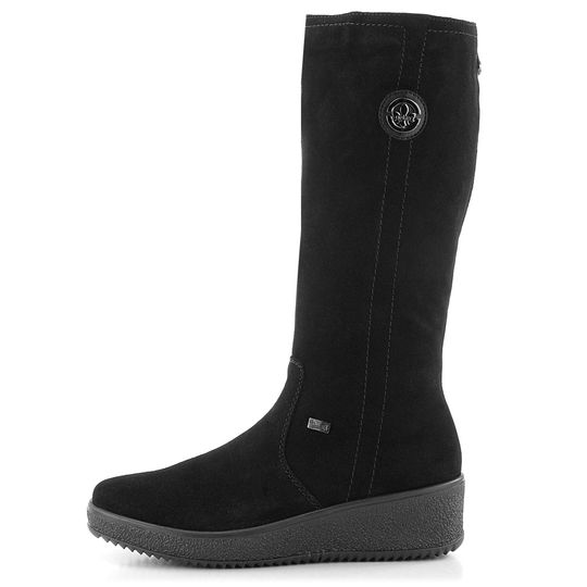 Dámské kozačky od značky Rieker kombinují styl a pohodlí pro chladné podzimní a zimní dny. Vyrobené z černé semišové kůže s elegantním štepováním, tyto boty jsou nejen módní, ale také praktické díky vodoodpudivé membráně RiekerTEX®. Vnitřní podšívka z vlny zajišťuje teplo a pohodlí, zatímco stélka potažená vlasovou střiží přidává na komfortu.