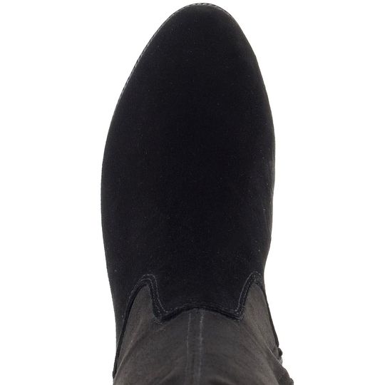 Kozačky mají stélku potaženou filcem a postranní zip pro snadné obutí. Horní obvod kozačky je přibližně 36,5 cm pro velikost 38, ale pružný materiál umožňuje rozšíření o minimálně 3 cm, což je ideální pro užší až standardní lýtka (velikost S až M). Výška kozaček je cca 34,5 cm bez podpatku, který má výšku 3,5 cm. Stabilní podpatek a flexibilní latexová podešev zajišťují pohodlnou chůzi.