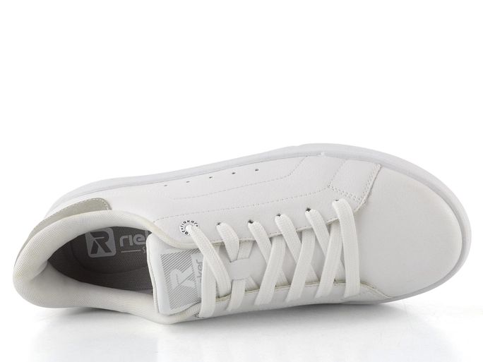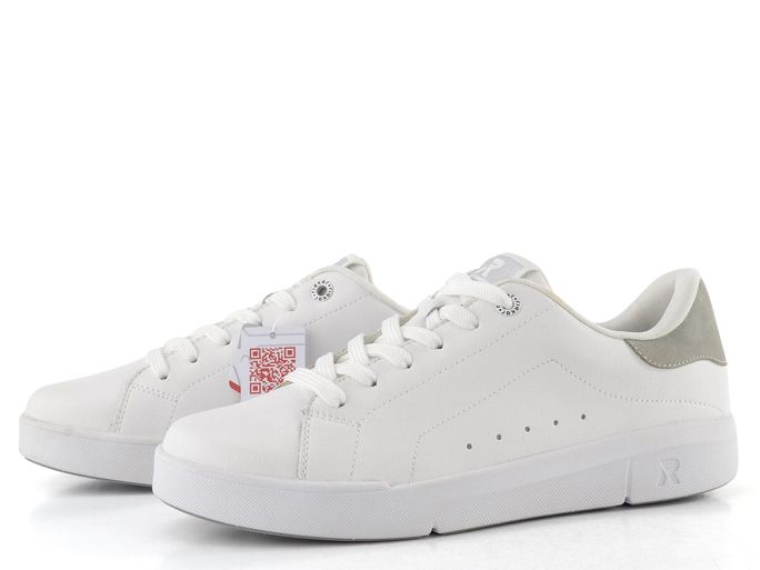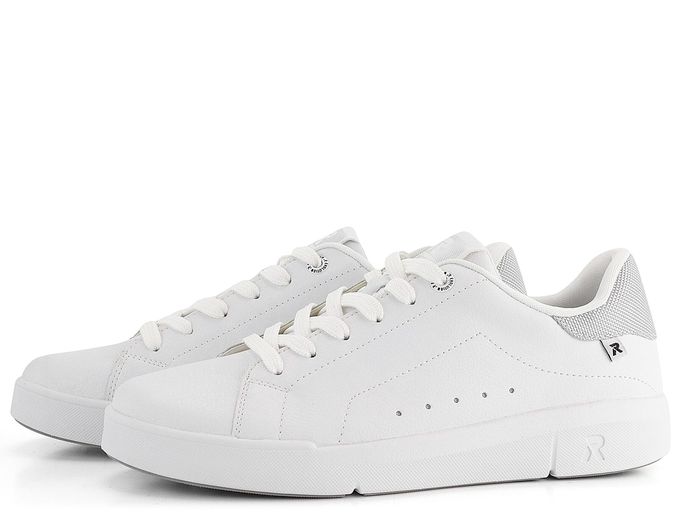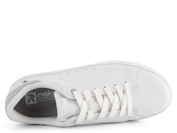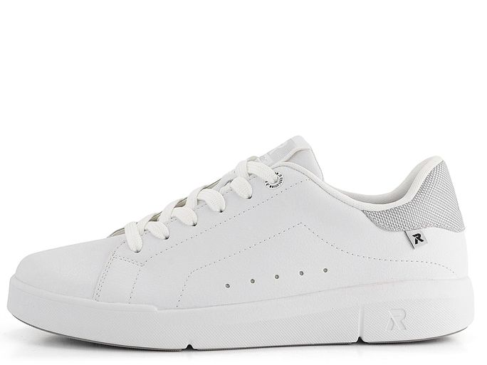 Styl a pohodlí se snoubí v dámských kožených teniskách značky Rieker Revolution. Tyto tenisky z nové řady R-EVOLUTION jsou super lehké, měkké, pružné a neuvěřitelně pohodlné. Jejich svršek je vyroben z hladké povrstvené kůže, doplněné světle šedým patním lemem z textilie, což jim dodává elegantní vzhled. Klasické šněrování s plochými tkaničkami a polstrovaný kotníkový lem i jazyk zajišťují maximální komfort při nošení.
