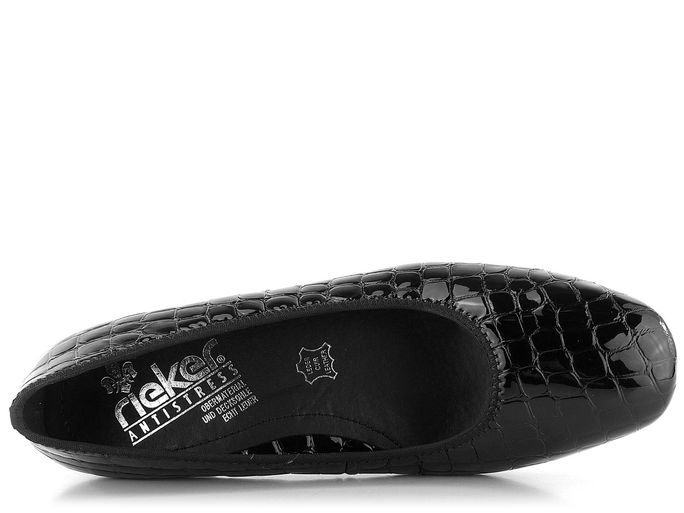 Pro dámy, které hledají eleganci a komfort v jednom, jsou tu lakované lodičky s krokodýlím vzorem od značky Rieker. Tyto lodičky jsou ideální jak pro každodenní nošení, tak pro slavnostní příležitosti. Svršek z lakované kůže s krokodýlím vzorem dodává botám jedinečný vzhled, zatímco celokožená podšívka se zabroušeným opatkem zajišťuje maximální pohodlí. Lodičky mají extra měkkou koženou stélku s podporou podélné nožní klenby, což oceníte při delším nošení. Flexibilní latexová podešev a pohodlný podpatek o výšce 3,7 cm přispívají k celkovému komfortu. Díky paspulce v obvodu je nošení těchto lodiček ještě příjemnější. Vyberte si kvalitu a styl s lodičkami od značky Rieker.
