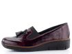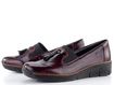 Dámské prozouvací polobotky v lakovaném provedení se širokou pružinkou na nártu a ozdobnými střapečky.