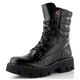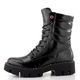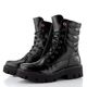 Šněrovací dámský kotník v černém lakovaném provedená, s teplou podšívkou, postranním zipem a vysokou hrubou podešví.