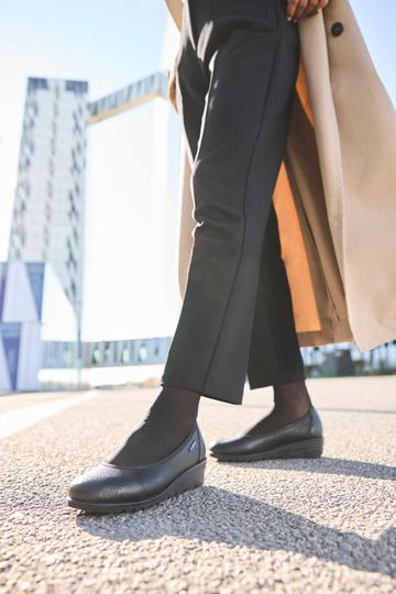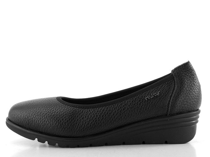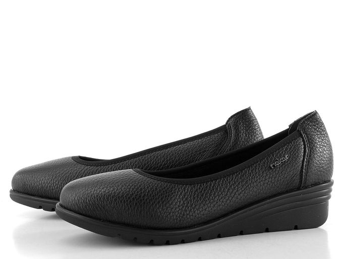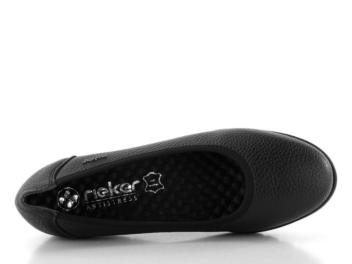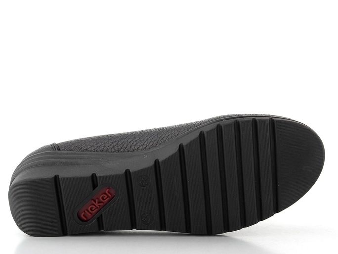 Komfortní dámské lodičky značky Rieker jsou ideální volbou pro podzimní a zimní sezónu. Tyto černé lodičky na klínku s jednoduchým střihem a kulatou špičkou vynikají svrchním materiálem z povrstvené strukturované kůže, který dodává botám elegantní vzhled. Pružná paspulka v obvodu zajišťuje optimální přizpůsobení a pohodlí při nošení.
