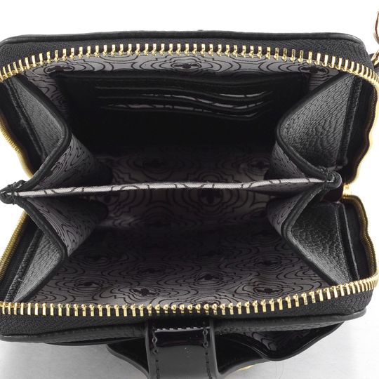 Kabelka má na přední straně kapsičku se zapínáním na magnetický druk, zdobenou kovovou broží ve tvaru čmeláka. Hlavní kapsa je uzavíratelná zipem a rozdělena pevnou přepážkou na dvě menší části. Uvnitř najdete tři přihrádky na platební karty a malou otevřenou kapsičku na hotovost.