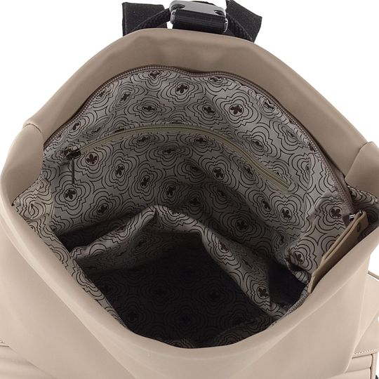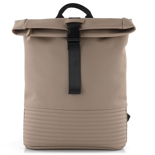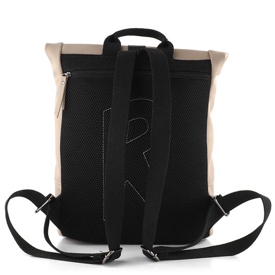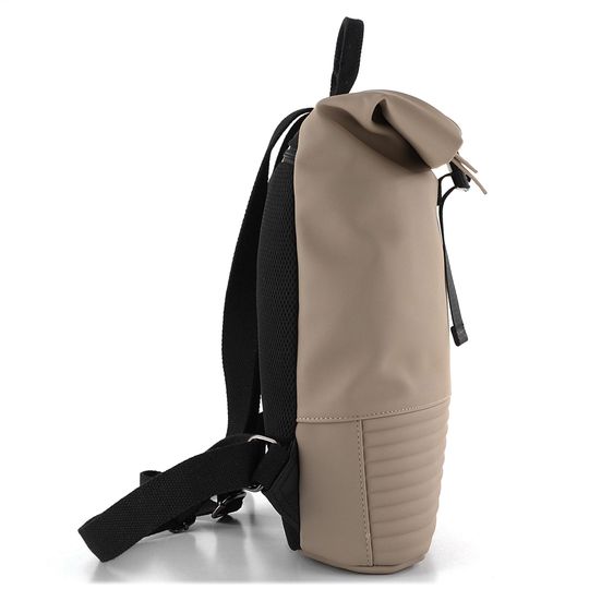 Městský stylový batoh v béžové barvě se zapínáním na sponu a prostorem pro notebook.