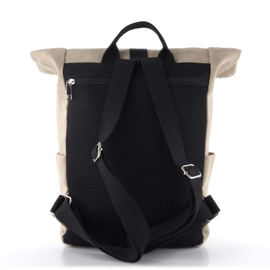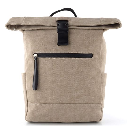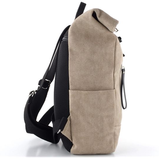 Městský stylový plátěný batoh v béžové barvě se zapínáním na plastovou sponu.