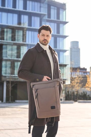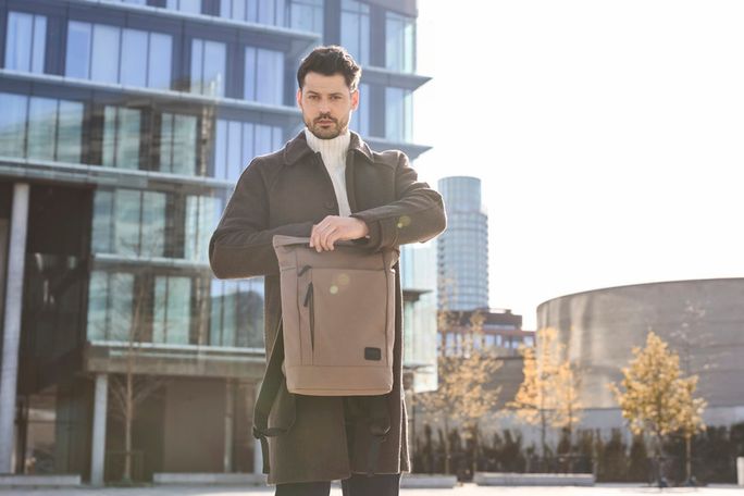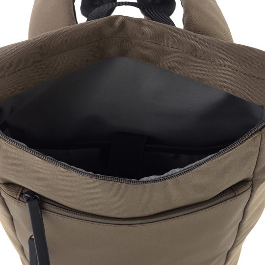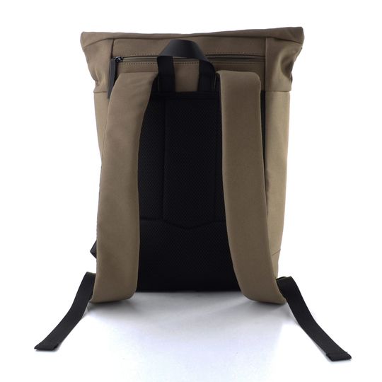 Prostorný městský batoh v khaki zelené barvě s vnitřním prostorem pro notebook.