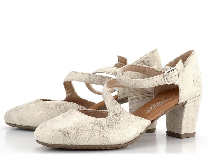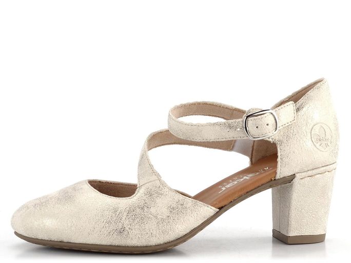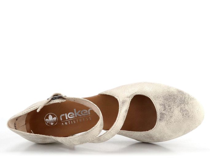 Hledáte komfortní dámské lodičky pro každodenní nošení i slavnostní příležitosti? Tyto lodičky od značky Rieker jsou ideální volbou. Vyrobené z lehce zabroušené syntetiky se strukturou, nabízejí jemný odstín metalické béžové až světle zlaté barvy. Prostorný kulatější tvar špičky zajišťuje pohodlí, zatímco měkká textilní podšívka a extra měkká syntetická stélka přispívají k celkovému komfortu.