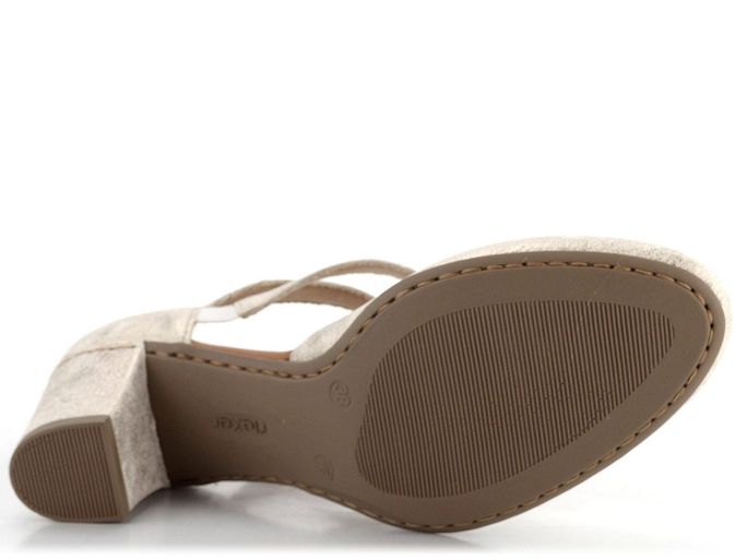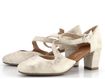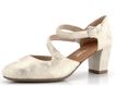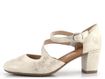 Velice pohodlné dámské lodičky v jemné světle zlaté barvě, na stabilním potaženém podpatku a s páskem upínaným na patent.