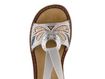 Dámské metalické sandály s korálky a pružným páskem provlečeným skrz kovovou ozdobou.