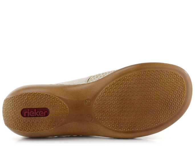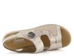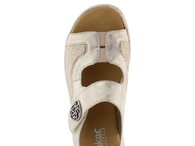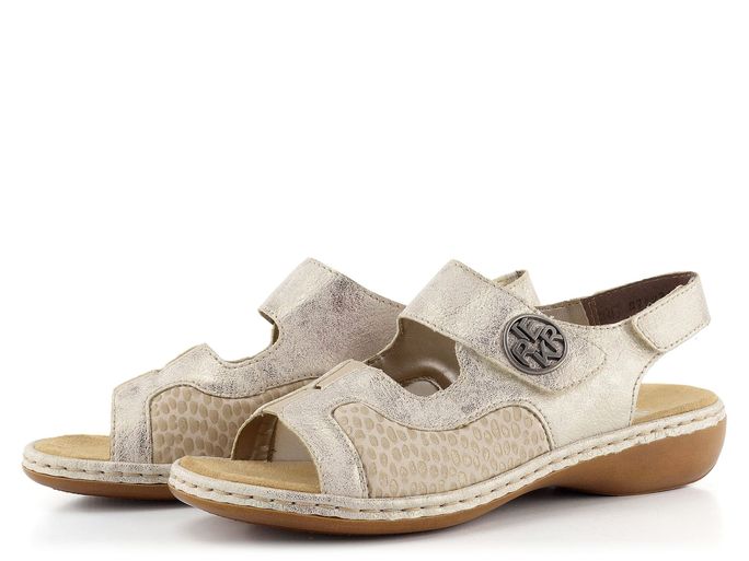 Pohodlné dámské sandály od značky Rieker jsou ideální volbou pro jarní a letní sezónu. Tyto páskové boty v kombinaci béžové a světle zlaté barvy vynikají svým metalickým leskem a pružností, která se přizpůsobí tvaru chodidla. Svršek je vyroben ze strukturované syntetiky a pružné textilie, což zajišťuje komfort a odolnost. Sandály mají otevřenou kulatou špičku a měkkou textilní stélku, která je pohodlná pro bosé chodidlo. Nártový a patní pásek jsou upínané na suchý zip, což usnadňuje obouvání. Lehká syntetická podešev s mírně zvýšenou patou (3,5 cm) zaručuje pohodlí při každém kroku. Tyto sandály jsou šité způsobem, který zvyšuje jejich trvanlivost a kvalitu. Perfektní volba pro každodenní nošení ve městě nebo na lehkou procházku.
