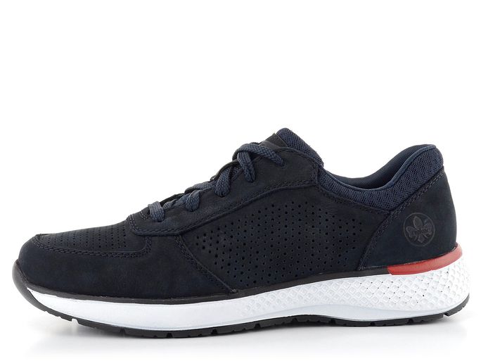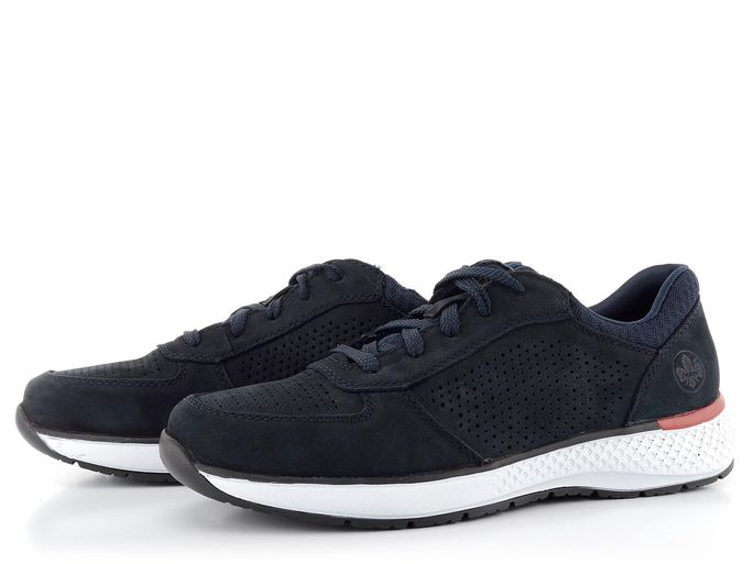 Pokud hledáte pohodlné a stylové tenisky na jaro a léto, pánské polobotky od značky Rieker vás jistě osloví. Jejich svršek z pevné nubukové kůže v temně modré barvě dodává botám elegantní vzhled. Perforace na špičce a bocích nejenže přidává na stylu, ale také zajišťuje lepší prodyšnost. Funkční šněrování umožňuje snadné a rychlé obutí.