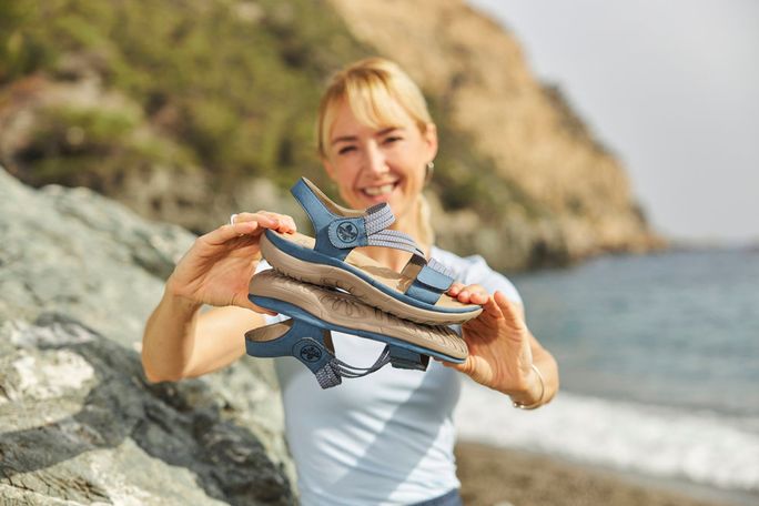 Představujeme vám sandály od značky Rieker, které jsou ideální volbou pro ženy hledající pohodlí a styl na jaro a léto. Tyto sandály v modrošedém jeans odstínu kombinují lehkost a eleganci s prvotřídním komfortem. Díky pružným žíhaným pásečkům se skvěle přizpůsobí tvaru vašich chodidel. Praktické upínání na suchý zip zajišťuje snadné nazouvání a vyzouvání. Anatomicky tvarovaná stélka a velmi lehká podešev zaručují, že je na noze téměř nepocítíte. Svršek i podšívka jsou vyrobeny ze syntetických materiálů, což zajišťuje dlouhou životnost a snadnou údržbu. Tento model je navržen s ohledem na trvalou kvalitu a udržitelnost, což koresponduje s našimi hodnotami.