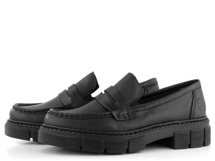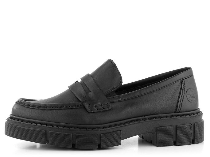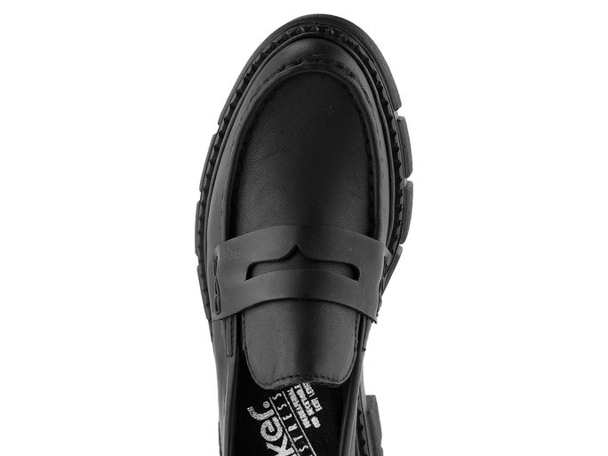 Dámské mokasíny z hladké kůže v černé barvě, na vysoké podešvi s hrubým vzorkem.