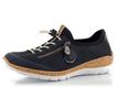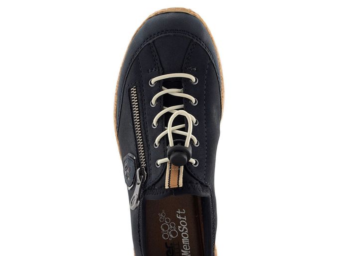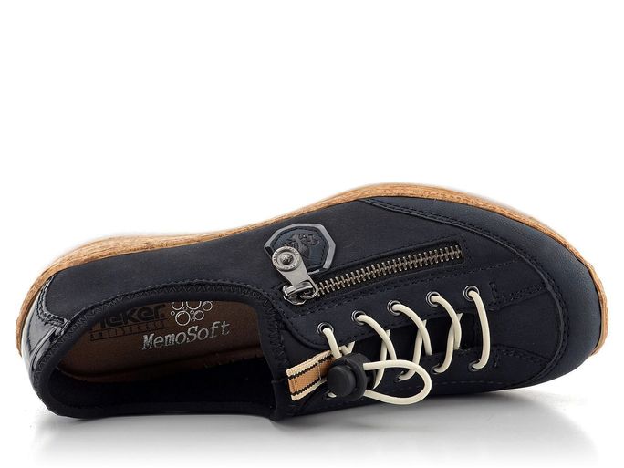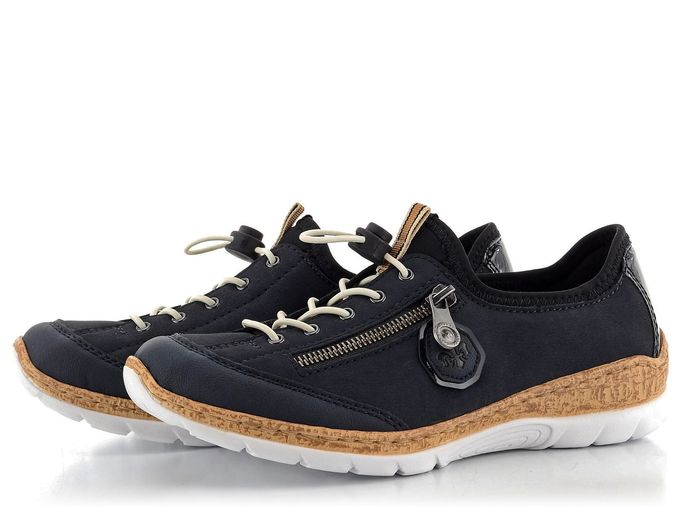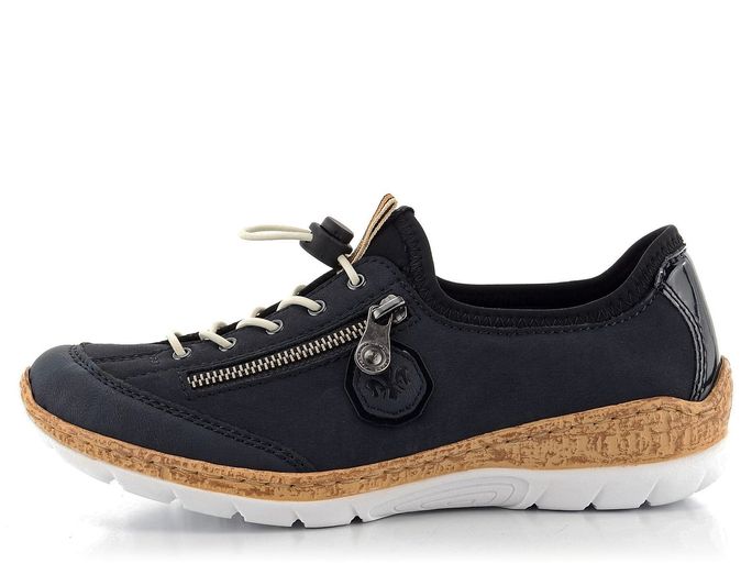 Pro ženy, které hledají stylovou a pohodlnou obuv, jsou tu dámské polobotky značky Rieker. Tyto boty vynikají ležérním prozouvacím střihem s kulatou špičkou a temně modrým odstínem, který se snadno kombinuje s různými outfity. Svršek je vyroben z matné syntetiky, zatímco opatek je potažen lakovanou syntetikou, což dodává botám elegantní vzhled. Na nártu najdete pružnou bílou gumičku, kterou lze dle potřeby utáhnout, a ozdobný zip. Lem obuvi je z pružné textilie pro snadné prozutí.