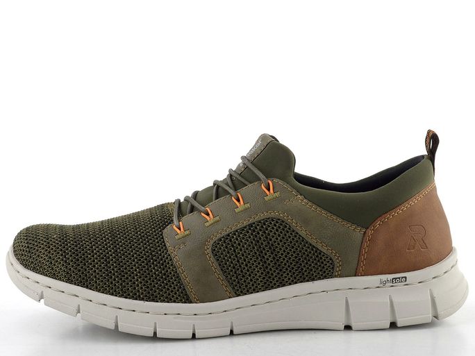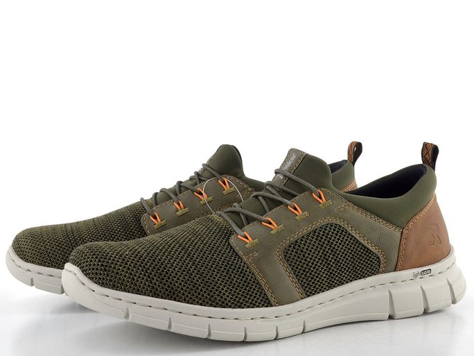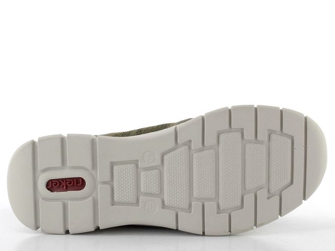 Stylové a komfortní pánské polobotky značky Rieker jsou ideální volbou pro jarní a letní sezónu. Tento sportovnější, prozouvací typ obuvi bez volného jazyka nabízí snadné a rychlé obutí díky pružným gumičkám místo šněrování. Svršek je vyroben z kombinace textilních a syntetických materiálů, což zajišťuje odolnost a pohodlí. Polobotky zaujmou tmavší olivovou barvou v kombinaci s hnědou a oranžovou, což jim dodává moderní vzhled.