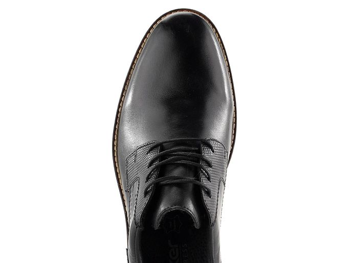 Elegantní pánské polobotky značky Rieker jsou ideální volbou pro každodenní nošení i formální příležitosti. Tyto boty kombinují hladkou kůži s kvalitní syntetikou na jazyku a patě, což zajišťuje dlouhou životnost a stylový vzhled. Polobotky mají užší špičku a klasické šněrování v derby střihu, což podtrhuje jejich sofistikovaný design.