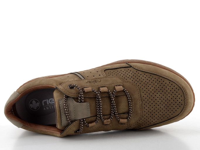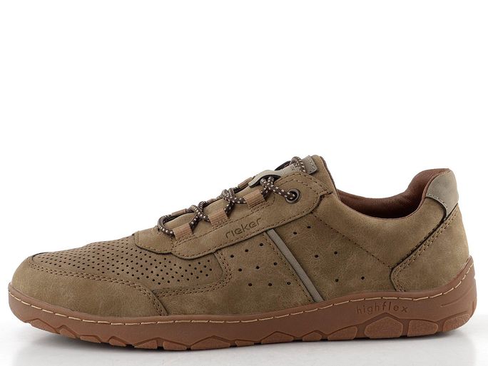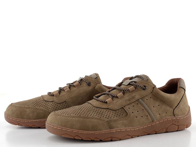 Moderní pánské polobotky od značky Rieker jsou ideální volbou pro muže, kteří hledají kombinaci pohodlí a ležérního stylu. Tyto polobotky v hnědobéžové barvě s jemně stínovanými šedými doplňky se skvěle hodí k riflím i k dalšímu oblečení. S komfortní a prostornou kulatou špičkou a perforovanými stranami, které zajišťují ventilaci, se budete cítit skvěle po celý den.