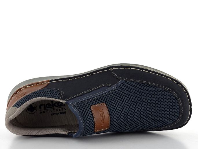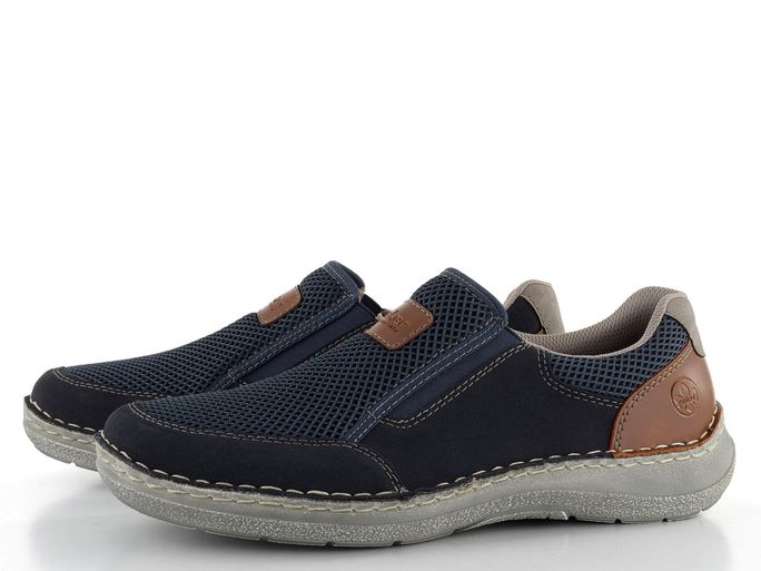 Představujeme vám pánské nazouvací polobotky značky Rieker, které jsou ideální volbou pro ty, kdo hledají komfort a styl v jednom. Tyto boty jsou navrženy pro standardní i širší typ chodidla, což zajišťuje maximální pohodlí při každodenním nošení. Elegantní modrá barva s hnědými doplňky a trendy dvojité štepování dodávají botám moderní vzhled, zatímco pružné vsadky na nártu usnadňují jejich obouvání. Svršek z kombinace syntetiky a textilie je nejen odolný, ale také prodyšný. Měkčená stélka a textilní podšívka zajišťují pohodlí na každém kroku. Tyto polobotky jsou ideální pro městské dobrodružství i lehké procházky.