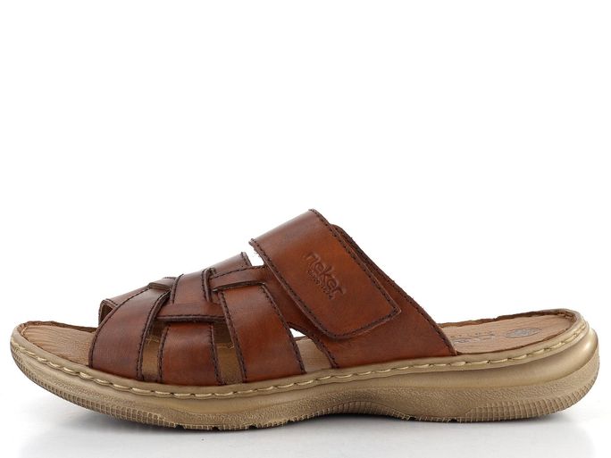 Zažijte pohodlí a styl s pánskými pantoflemi od značky Rieker. Tyto lehké a pohodlné pantofle jsou ideální volbou pro jarní a letní dny. Vyrobené z hladké kůže v elegantním stínovaném hnědém odstínu, nabízejí nejen estetický vzhled, ale také dlouhou životnost. Pantofle mají prostornou kulatou špičku a jednotlivé pásky, které zajišťují dobrou ventilaci pro vaše chodidla. Nártový pásek se snadno upíná na suchý zip, což umožňuje přizpůsobení podle potřeby. Vnitřní strana pásků je vyrobena ze syntetického materiálu, zatímco měkká kožená stélka zajišťuje maximální komfort. Díky lehké a flexibilní podešvi jsou tyto pantofle vhodné jak do interiéru, tak exteriéru.