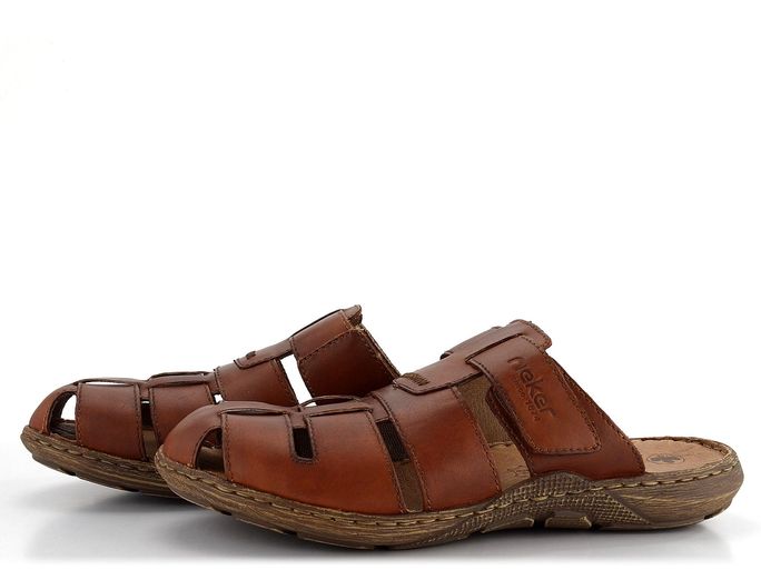Pohodlné a ležérní pánské pantofle od značky Rieker jsou ideální volbou pro každodenní nošení. Vyrobené z kvalitní hladké kůže v tmavším, stínovaném hnědém odstínu (brandy), tyto pantofle poskytují maximální komfort díky měkké kožené stélce a flexibilní podešvi. Prostorná kulatá špička a jednotlivé pásky zajišťují vynikající odvětrávání chodidla. Nártový pásek se snadno upíná na suchý zip, což umožňuje rychlé a pohodlné obutí. Syntetická podšívka a šitý výrobní způsob zaručují dlouhou životnost a odolnost. Tyto pantofle jsou skvělou volbou jak do interiéru, tak i exteriéru, ať už jste na lehké procházce venku nebo v kanceláři. Dopřejte si kvalitu a styl s pantoflemi od značky Rieker.