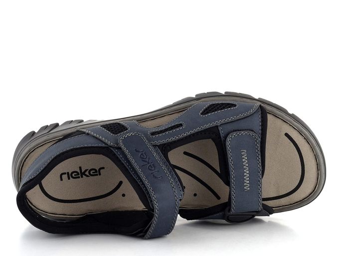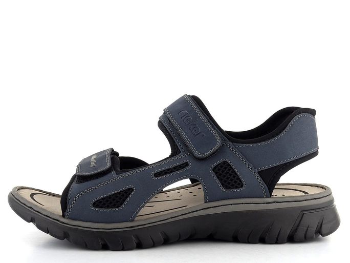 Pohodlné páskové sandály od značky Rieker jsou ideální volbou pro letní měsíce. Jejich sportovnější střih a šedomodrý jeans odstín dodají vašemu outfitu styl a eleganci. Svršek je vyroben z kombinace matné syntetiky a textilie, což zajišťuje nejen atraktivní vzhled, ale také odolnost a pohodlí. Dva upínací pásky na suchý zip umožňují snadné a rychlé přizpůsobení boty vašim potřebám. Sandály jsou vybaveny měkkou textilní podšívkou a příjemně měkkou stélkou, což zaručuje komfort při každém kroku. Lehká a flexibilní podešev s hrubým vzorkem poskytuje stabilitu a jistotu na různých površích.
