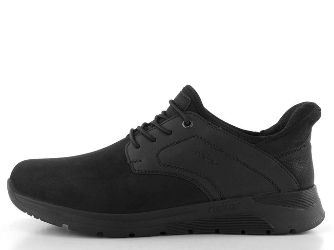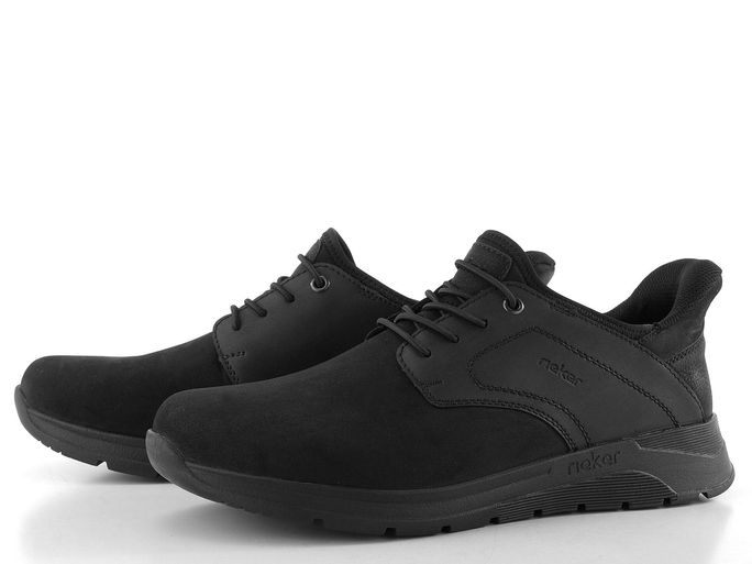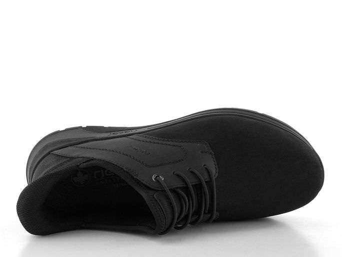 Pánské polobotky od značky Rieker jsou ideální volbou pro muže, kteří hledají kombinaci pohodlí a stylu. Tento model v černé barvě se vyznačuje širším střihem (šíře H), což zajišťuje maximální komfort během celodenního nošení. Systém Ready2Go® umožňuje snadné obutí – stačí pouze vklouznout do boty a vyrazit. Svršek je vyroben z pevné nubukové kůže v kombinaci se syntetikou, zatímco měkká textilní podšívka a vyjímatelná vložka potažená hladkou kůží se postarají o příjemný pocit na nohou. Lehká syntetická podešev zaručuje stabilitu a flexibilitu, což oceníte při každém kroku. Tyto polobotky jsou skvělou volbou pro podzim a zimu.