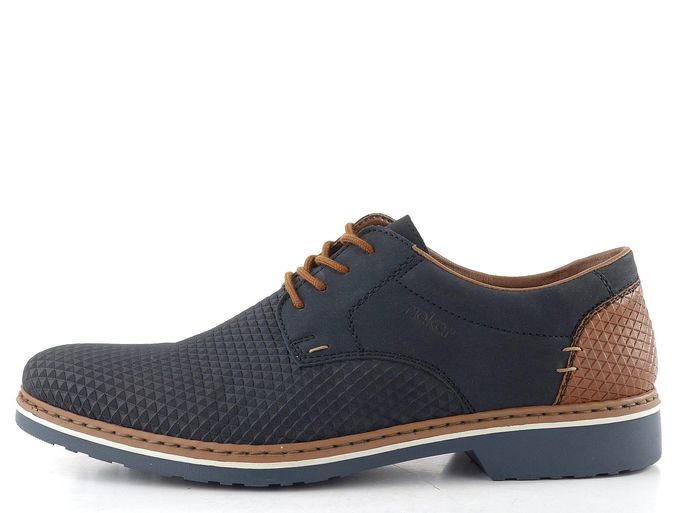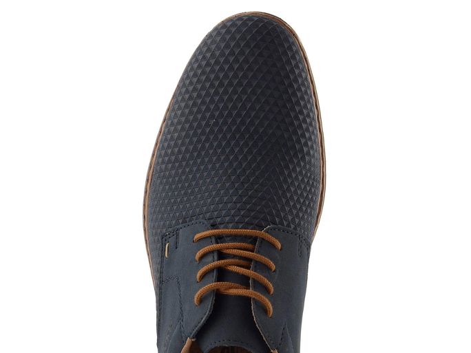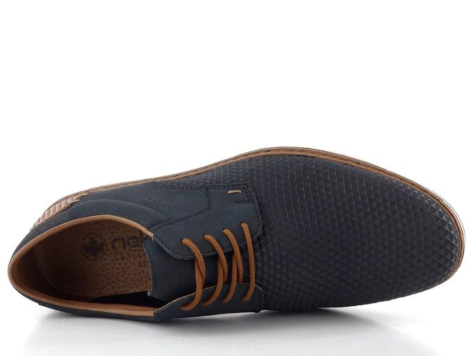 Pánské polobotky od značky Rieker v tmavě modré barvě s jemným vzorem představují ideální volbu pro muže, kteří ocení eleganci a pohodlí. Tyto boty s kulatou špičkou jsou navrženy pro širší typ chodidla, označované jako "extra weit", což zaručuje komfort během celého dne. Svršek z matné a hladké syntetiky s plastickým vzorkem doplňují hnědé detaily, které dodávají šmrnc. Klasické šněrování s kulatými tkaničkami a polstrovaný kotníkový lem zajišťují skvělé padnutí. Extra měkká kožená stélka a flexibilní syntetická podešev s širokým podpatkem přispívají k celkovému komfortu. Tyto polobotky jsou perfektní volbou pro jarní a letní dny, kdy chcete vypadat stylově a cítit se skvěle.