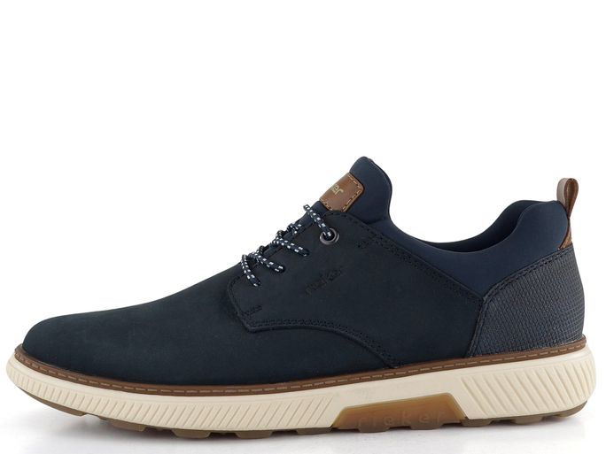 Představujeme pohodlné pánské polobotky od značky Rieker v tmavě modré barvě, ideální pro podzimní a zimní sezónu. Tyto polobotky vynikají ležérním střihem v extra šíři, což je perfektní volba pro širší typ chodidla. Svršek je vyroben z kvalitní nubukové kůže a textilie, což zajišťuje dlouhou životnost a komfort při nošení. Tmavě modrá barva je doplněna hnědým logem a poutkem, což dodává botám stylový vzhled.