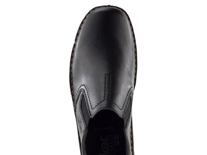 Pánské prozouvací polobotky od značky Rieker představují ideální volbu pro ty, kteří hledají komfort a styl. Tyto boty v černé barvě jsou vyrobeny z jemně strukturované kůže a díky svému ležérnímu designu se hodí jak do kanceláře, tak na lehkou procházku městem. Model je vybaven dvěma pruženkami po stranách, což zajišťuje snadné obutí a pohodlné nošení.