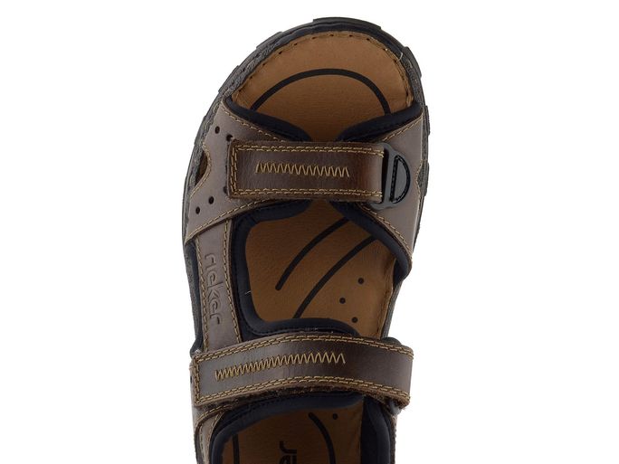 Pro letní sezónu jsou ideální pohodlné vycházkové sandály od značky Rieker. Tyto sandály se vyznačují sportovnějším a pohodlným střihem, který je perfektní pro každodenní nošení. Svrchní část je vyrobena z hladké kůže v tmavě hnědém (čokoládovém) odstínu se světle hnědým štepováním, což dodává botám elegantní vzhled. Uvnitř najdete příjemnou softshellovou textilii a měkkou stélku potaženou hladkou kůží, která zajišťuje komfort při každém kroku. Díky třem upínacím páskům na suchý zip je možné sandály snadno přizpůsobit noze. Bytelná vyšší podešev a šitý výrobní způsob zaručují dlouhou životnost a odolnost. Tyto sandály jsou součástí kolekce pro muže na jaro/léto 2023 a jejich šířka je G. Jsou skvělou volbou pro ty, kteří hledají kvalitní a stylovou obuv pro každodenní nošení.