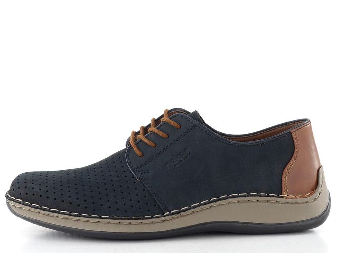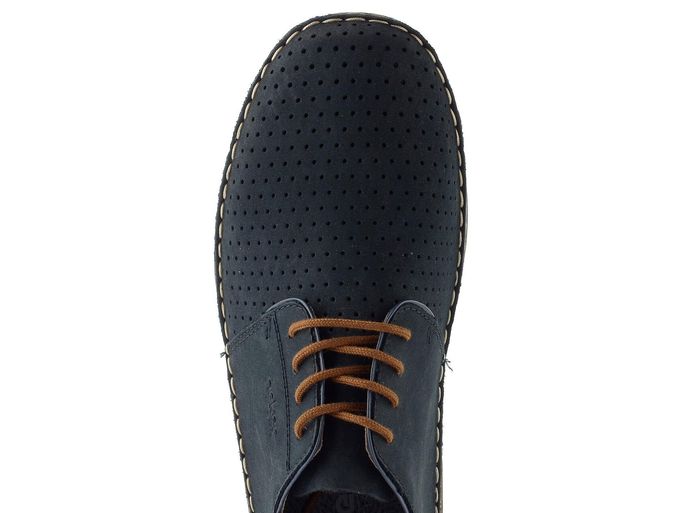 Pánské šněrovací polobotky od značky Rieker jsou ideální volbou pro muže, kteří hledají styl a pohodlí v jednom. Tyto polobotky v tmavě modré barvě s světle hnědými doplňky jsou navrženy tak, aby vyhovovaly i širším typům chodidel, díky výrobci deklarovanému provedení „extra weit“. Vyrobené z kvalitní nubukové kůže a s prodyšnou perforací špičky, zajistí, že vaše nohy zůstanou v suchu a pohodlí po celý den.