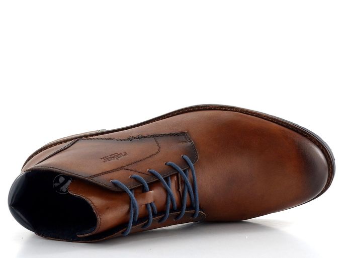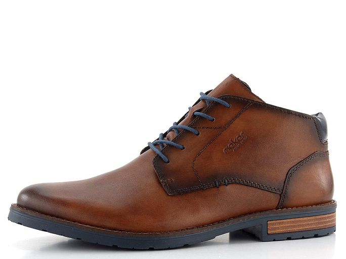 Pro muže, kteří ocení eleganci a kvalitu, představujeme pánský kotník od značky Rieker v nádherném odstínu přírodní hnědé. Tento model je ideální pro podzimní a zimní sezónu, s hladkým koženým svrškem a doplňky v tmavě modré barvě, které dodávají botám sofistikovaný vzhled.