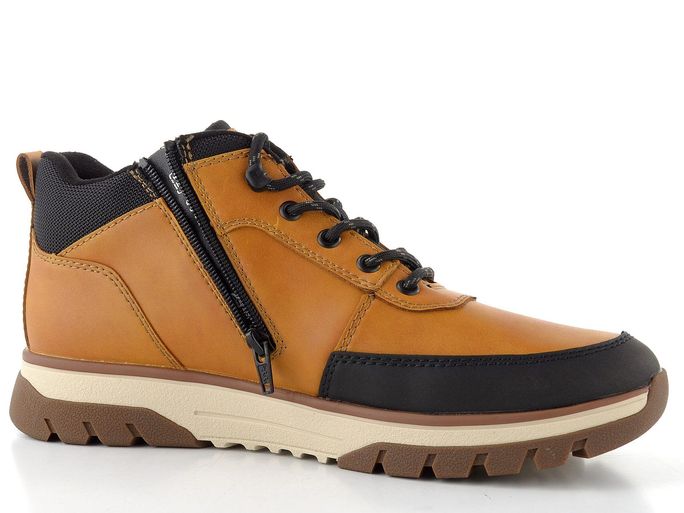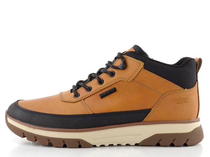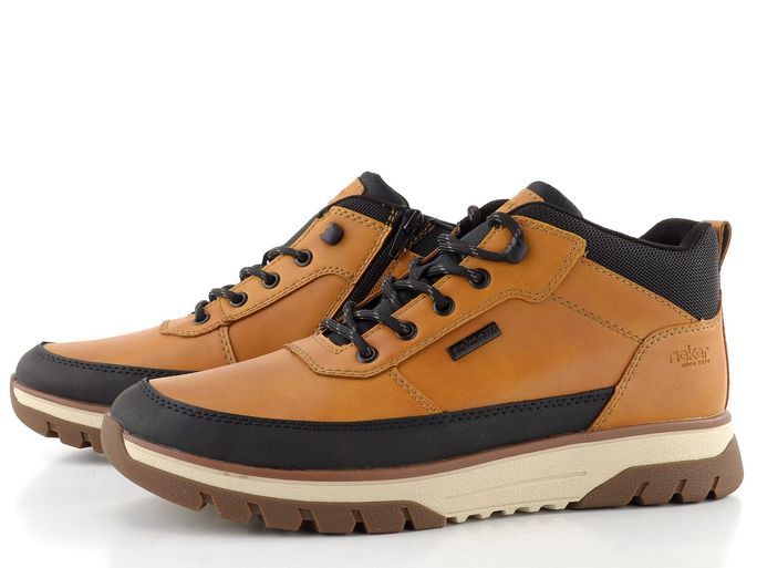 Praktické šněrování s kovovými průvlaky a zip na vnitřní straně usnadňuje obouvání. Kotník je silně polstrovaný, s vyjímatelnou pěnovou vložkou, která zajišťuje pohodlí. Díky vodoodpudivé membráně riekerTEX® se hodí do různých podmínek. S lehkou podešví s hrubým vzorkem je tento model ideální na podzimní a zimní procházky.